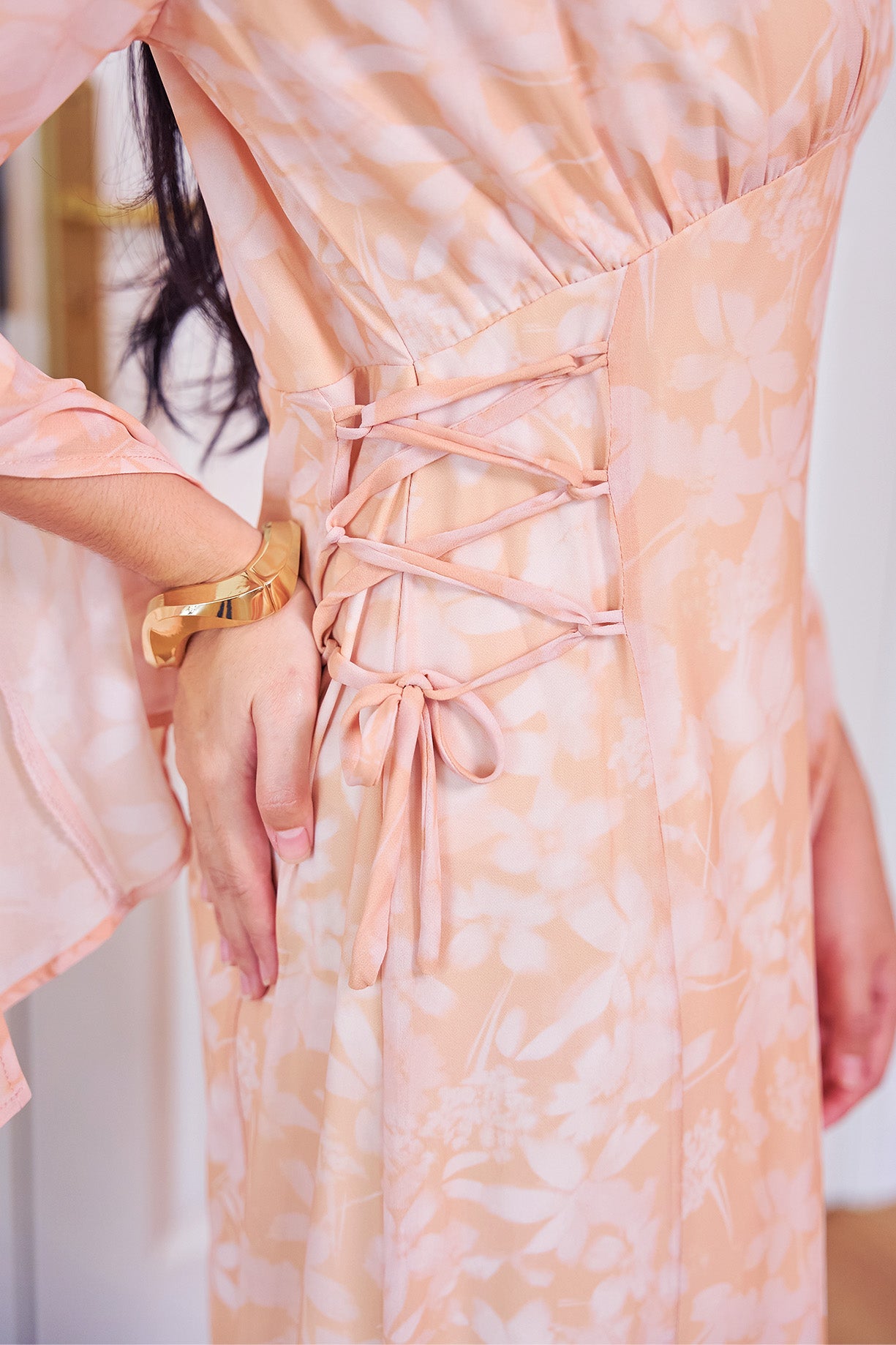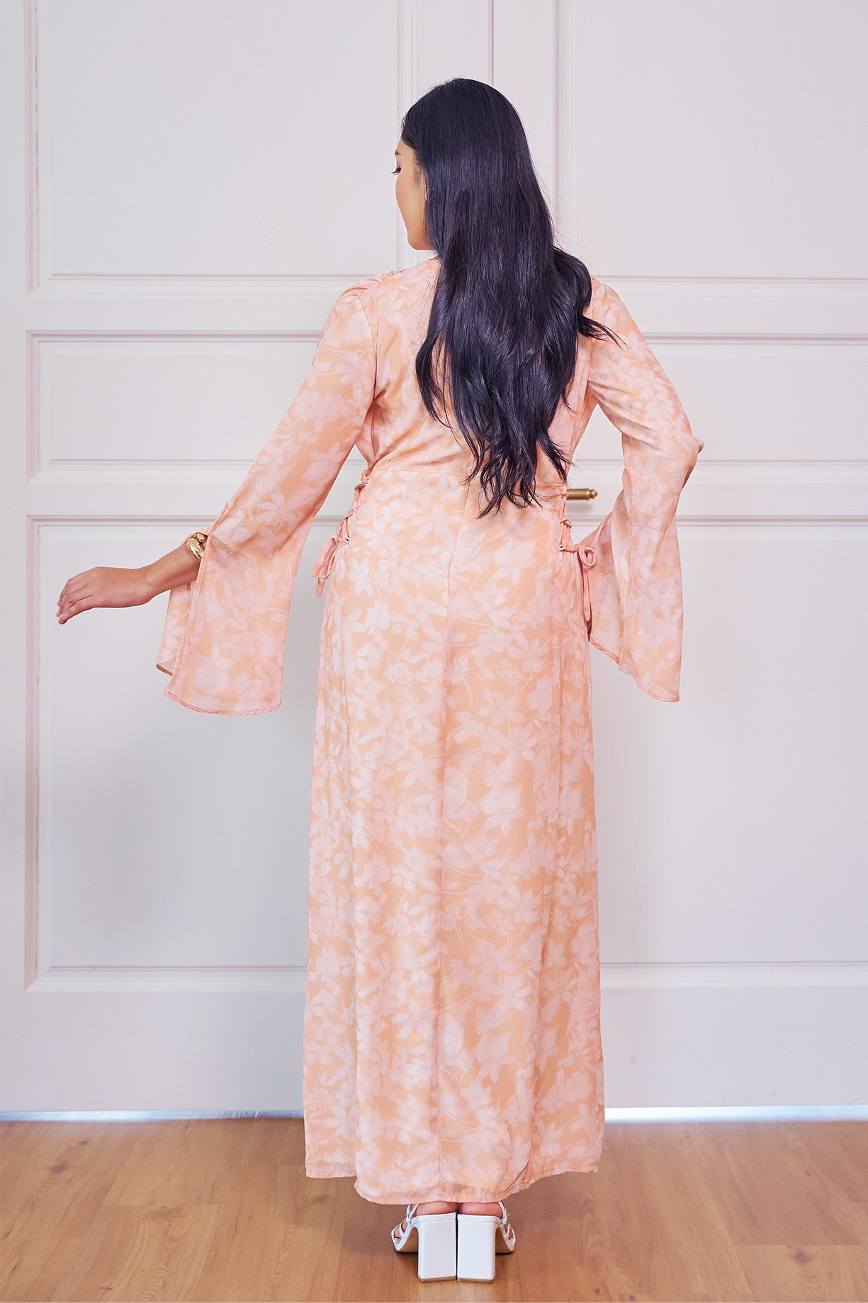 The Sienna Dress effortless charm in motion. Featuring a flattering wrap fit, flowy bell sleeves with slit, and lace-up side detail, it’s designed to move with ease while keeping you comfortable.
