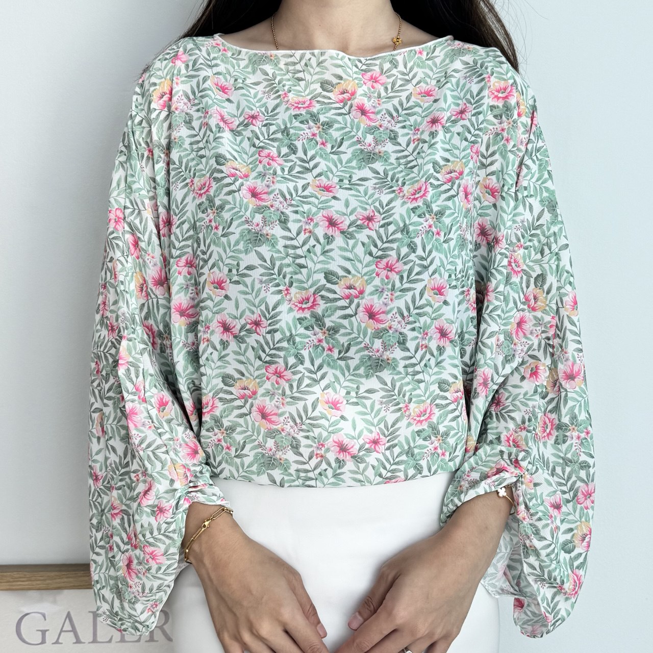 A flowy printed cape designed with a relaxed silhouette for an effortlessly graceful look. Made from lightweight chiffon, it drapes beautifully and adds a soft, feminine touch to any outfit. Perfect for pairing with skirts or tailored pants for an elevated everyday ensemble.