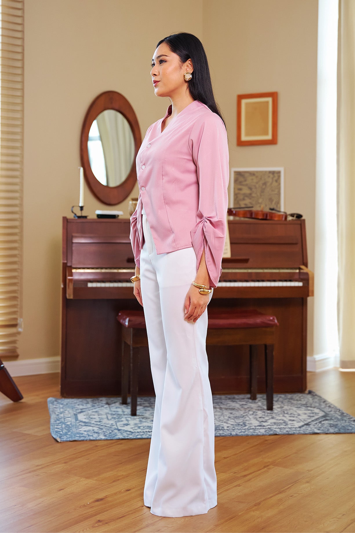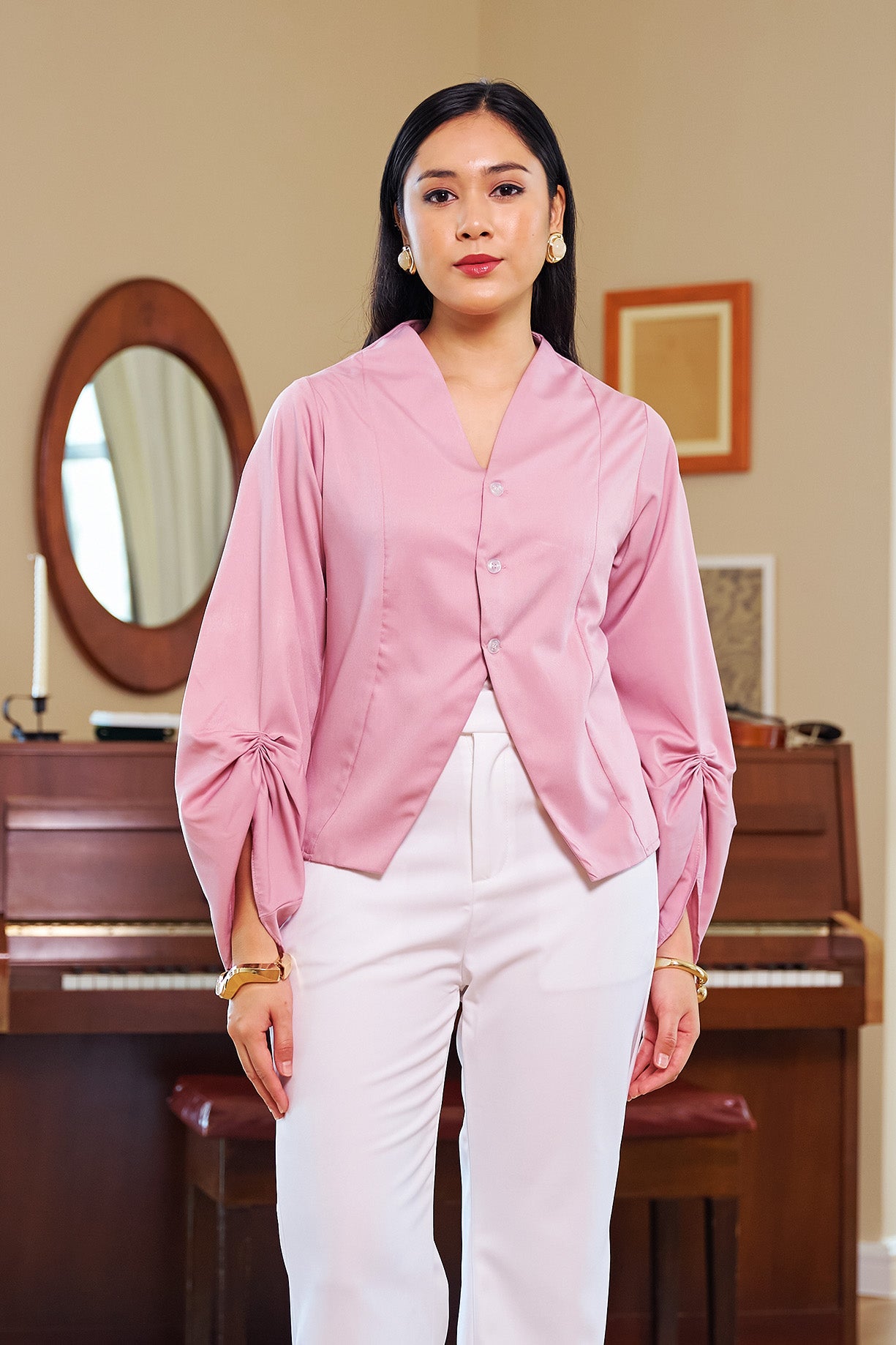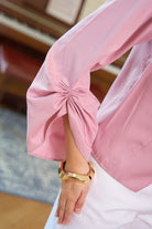 The Vee Top effortless sophistication in soft, breathable cotton. Featuring a sharp V-neckline, gathered sleeves, and a subtle high-low hem for a timeless, flattering look.