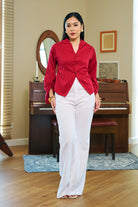 The Vee Top effortless sophistication in soft, breathable cotton. Featuring a sharp V-neckline, gathered sleeves, and a subtle high-low hem for a timeless, flattering look.